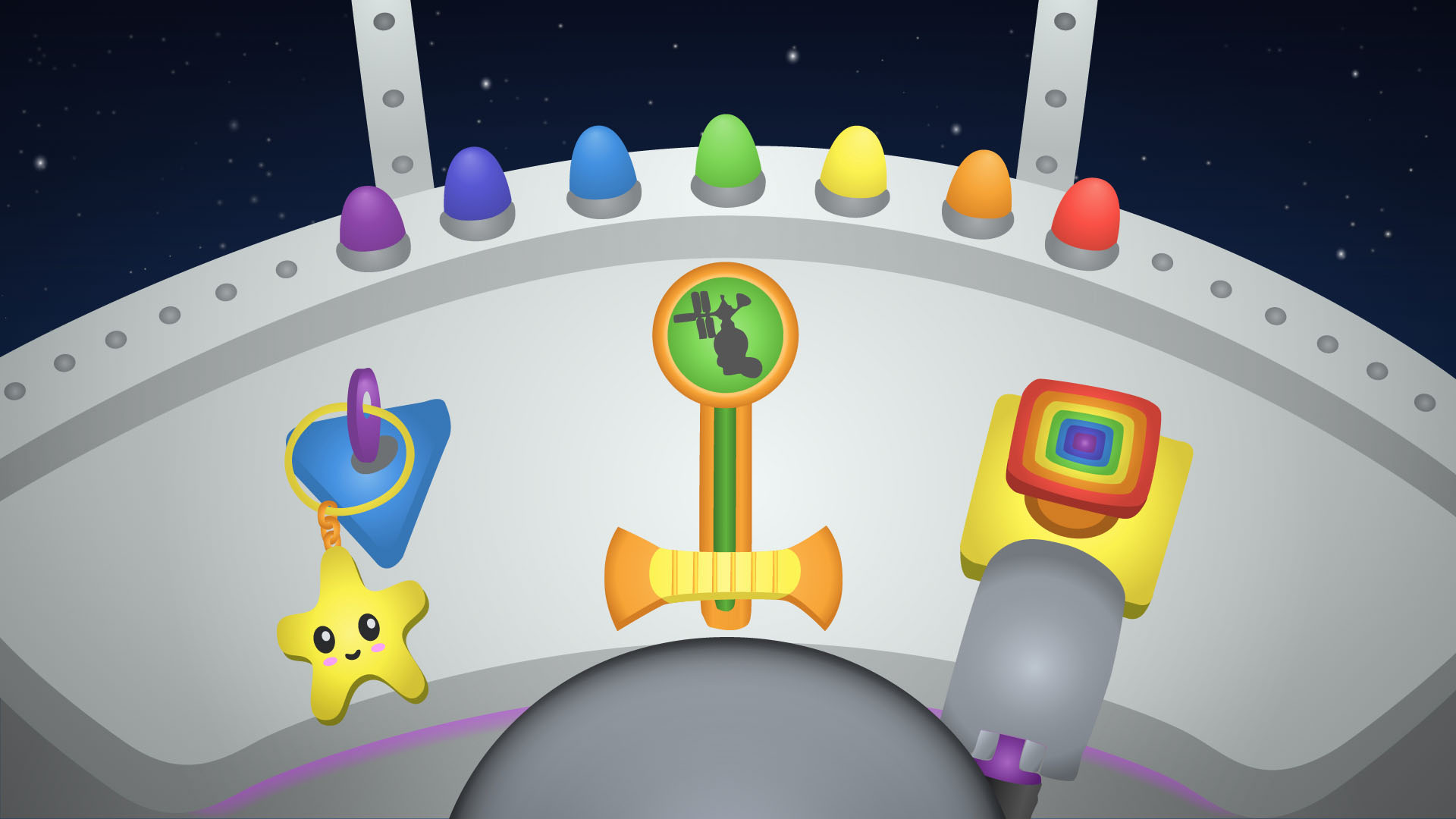 Here's an example where a rainbow colored button is pressed down once and returns to its original position, demonstrating a one-shot interaction animation.